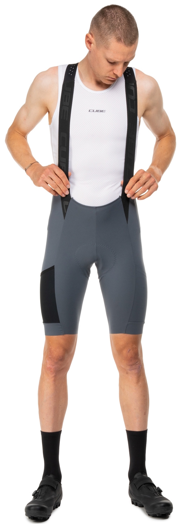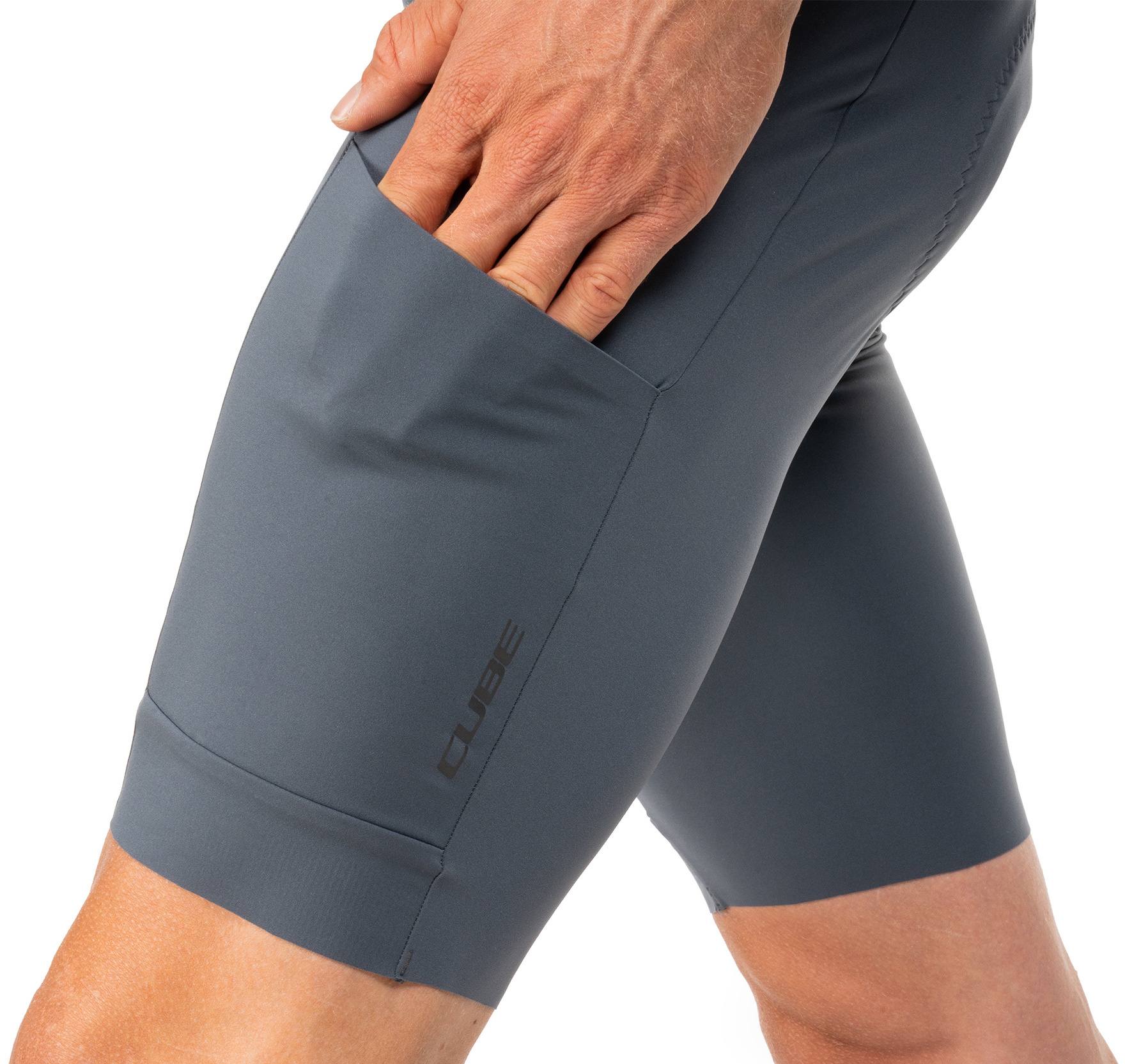The CUBE GRAVEL CARGO Bib Shorts are made from breathable stretch fabric that ensures a great fit and full freedom of movement. Anti-odour treatment actively combats unpleasant odours. Featuring the premium CUBE Team Pad, these bib shorts are designed to deliver maximum comfort on long-distance rides. Side pockets offer practical storage for tools, snacks or other essentials. Ideal for gravel riders looking for a functional and comfortable solution.