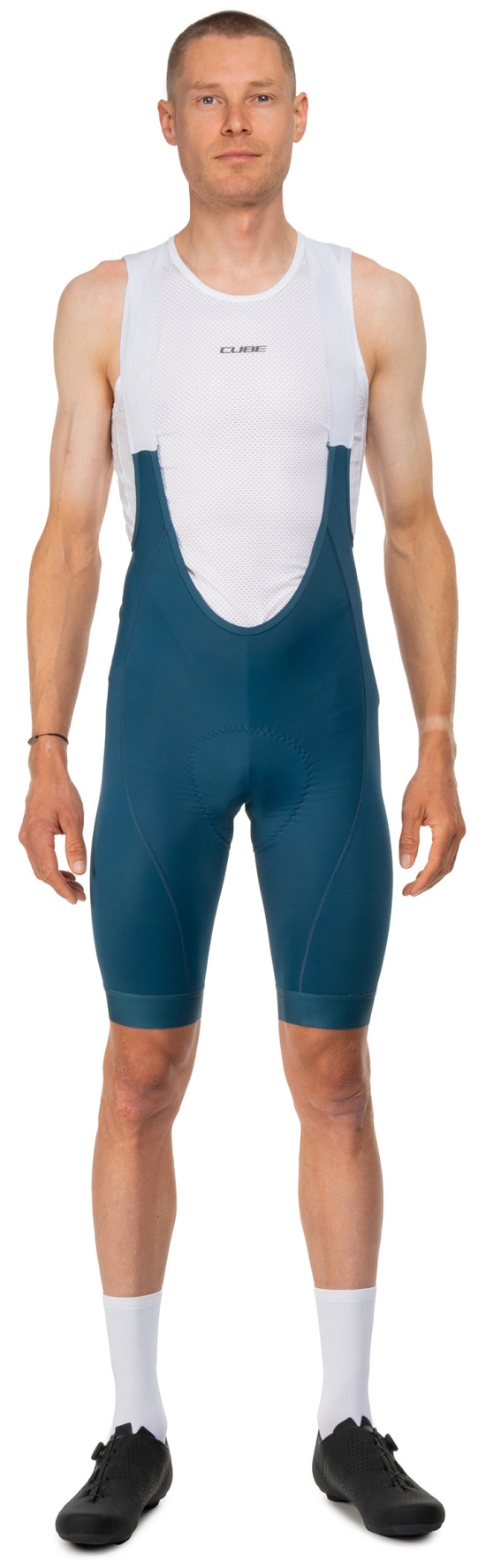 The CUBE Road/XC Bib Shorts impress with an advanced construction for premium comfort and performance. Made from high-quality, abrasion-resistant, quick-drying stretch fabric with Lycra, they offer a perfect fit and exceptional freedom of movement. Streamlined seams minimise potential friction points and enhance comfort on long rides. The newly developed ergonomic chamois pad delivers targeted cushioning and optimal pressure distribution for lasting support during multi-hour efforts. Ultra-soft, anatomically designed straps provide a secure fit without pressure points, while elastic silicone leg grippers keep the shorts firmly in place. Strategically positioned reflective elements enhance visibility in low-light conditions. These bib shorts combine advanced fabrics with sophisticated design – perfect for discerning riders.