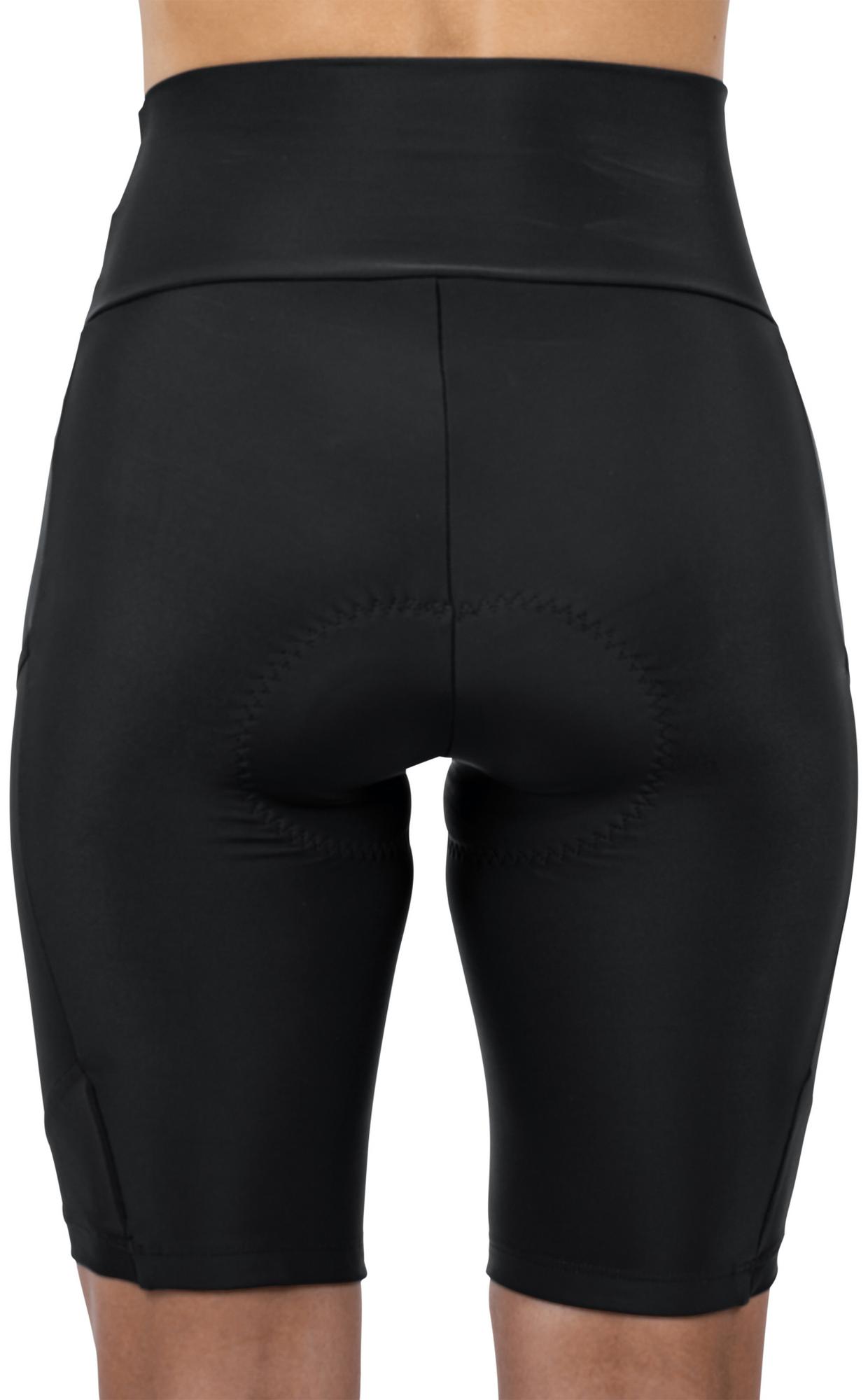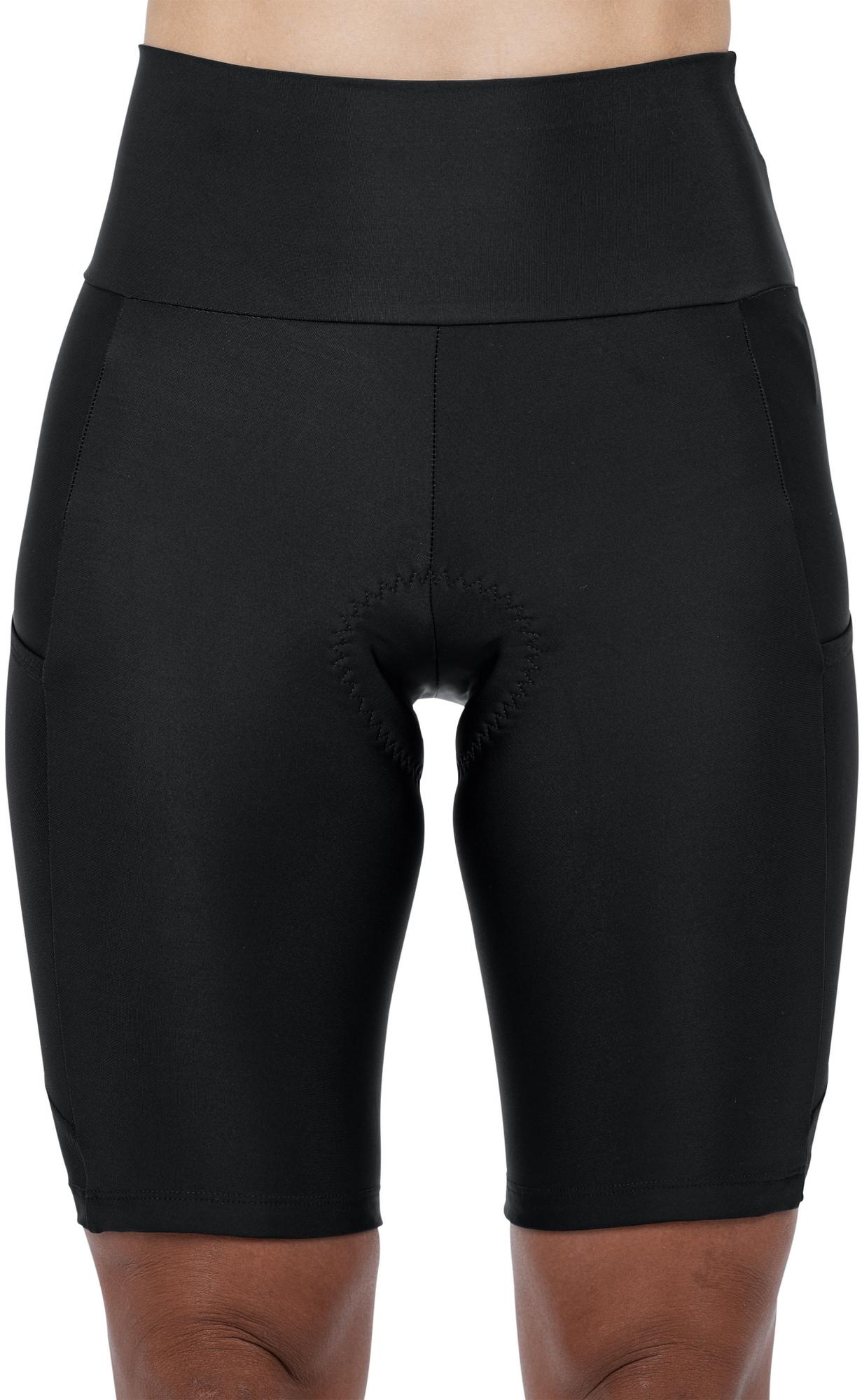 A triumph of wearability! From the women's-specific chamois pad to the super-soft, comfortable fabric, extra-high-cut waist and silicone leg grippers: these shorts don't fit like a glove they fit like perfect shorts should! Mesh side pockets offer extra room to keep the essentials within easy reach and reflective print helps to keep other road users aware of your presence. Whatever you ride, these cycling shorts will keep you happy in the saddle for hours!