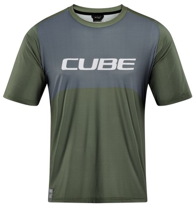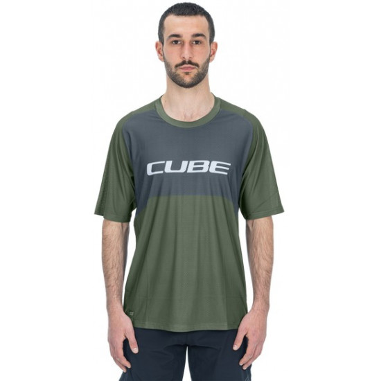 - Cycling jersey Cube Vertex Round Neck TM S/S olive'n'grey