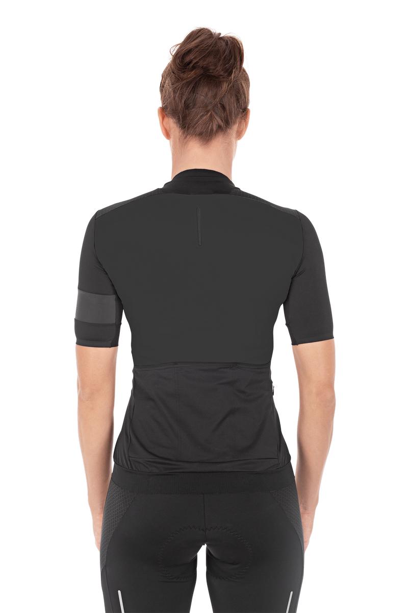 Our women-specific short-sleeve Blackline jersey combines maximum performance with deliberately understated looks. Constructed from hard-wearing, quick-drying technical fabric that fits perfectly thanks to the athletic cut. As you'd expect of all our premium products, we paid careful attention to the details that ambitious bikers look for and included a full-length front zip, a small, waterproof zip rear pocket, stretchy silicone print on the seam and reflective print.