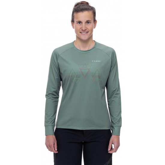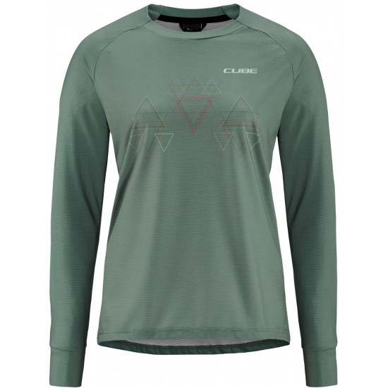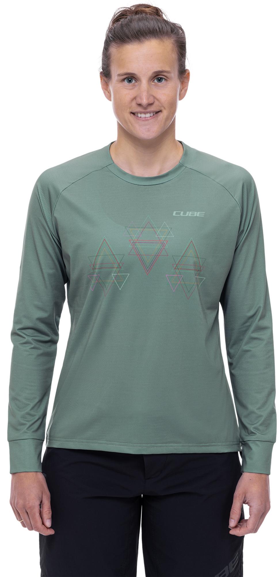 When its chilly outside, you can't go wrong with the women's long-sleeve cube mtb round-neck jersey. Feminine print details up the style factor, while the breathable, quick-drying fabric will keep you feeling comfy and fresh all day.