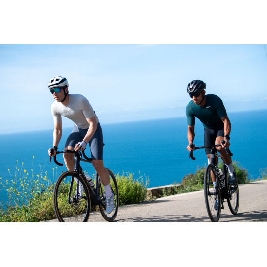 The elastic material mix ensures a flexible yet sporty fit of this road jersey. In addition, the colour-block design and tone-on-tone edging at the hem provide a modern style. The reinforcements on the back pocket are particularly practical and offer stability. The ergonomically cut flat collar also provides extra comfort, while the laser-cut edges give the bike jersey a neat touch.
