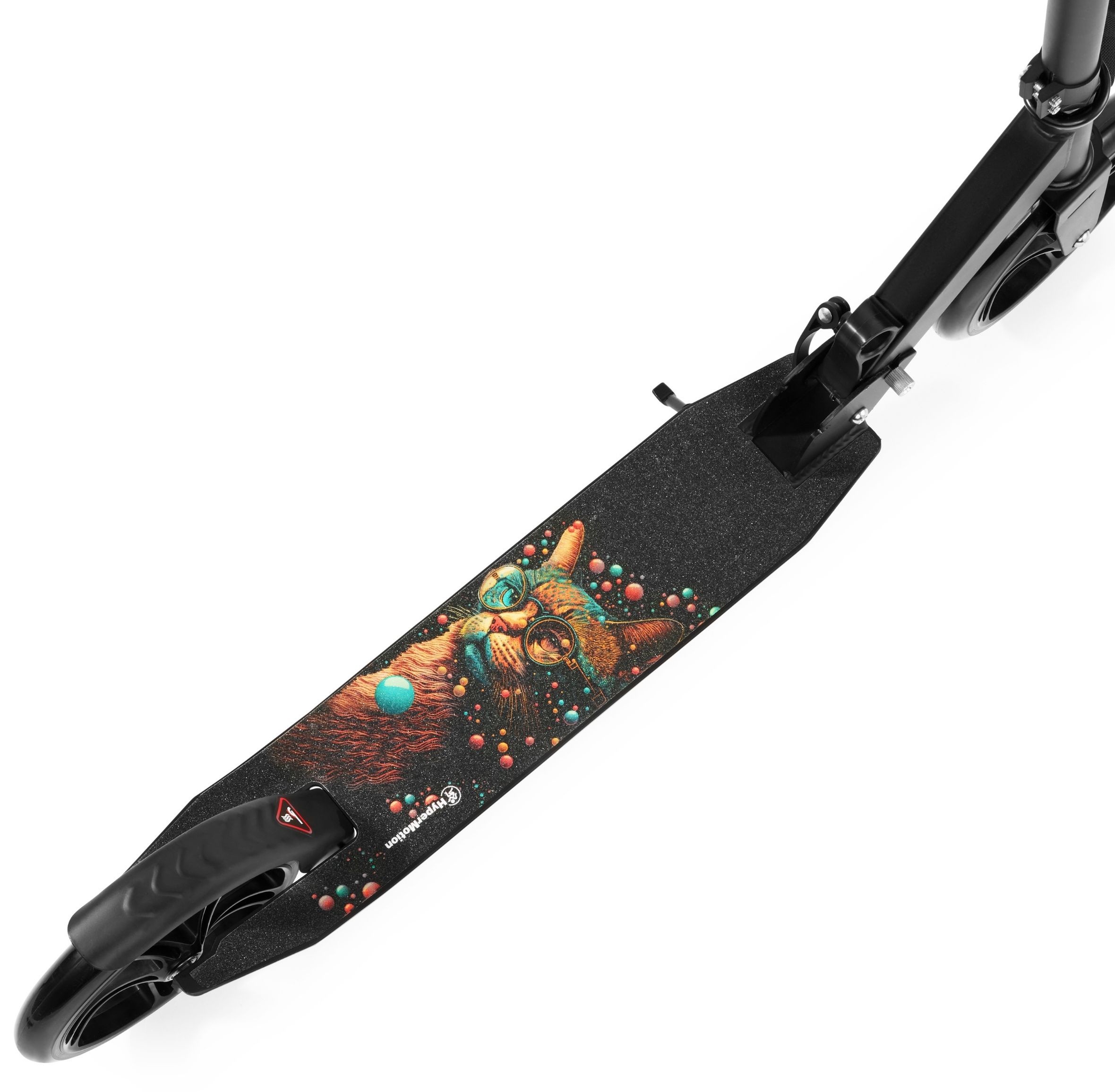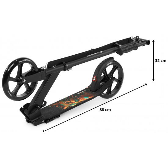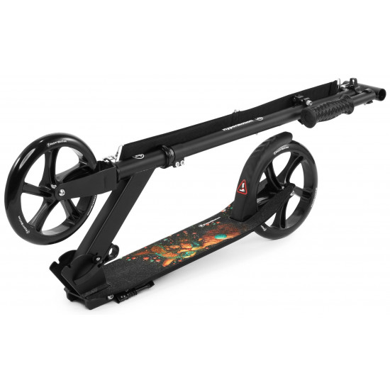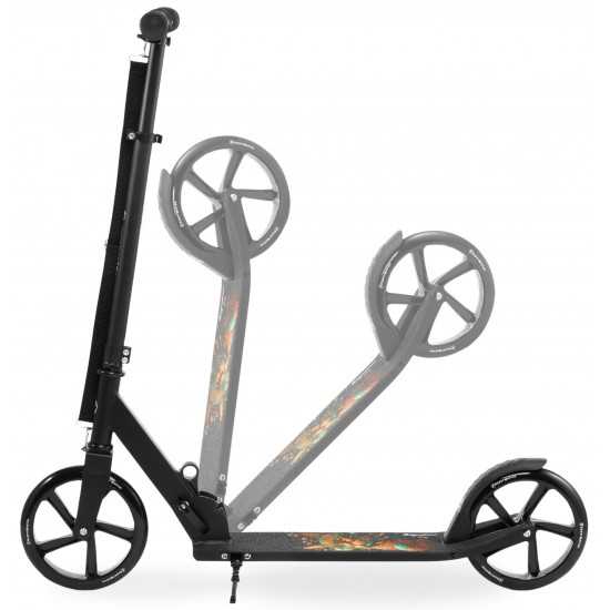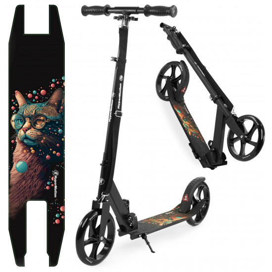 The Vibe Black scooter is a real design gem! The platform is decorated with an unusual galactic cat pattern , and the deep black of the structure adds elegance and a modern look. It's not just a means of transport, it's a real fashion accessory that attracts the attention of every passer-by and allows for unforgettable rides in an extremely stylish way!