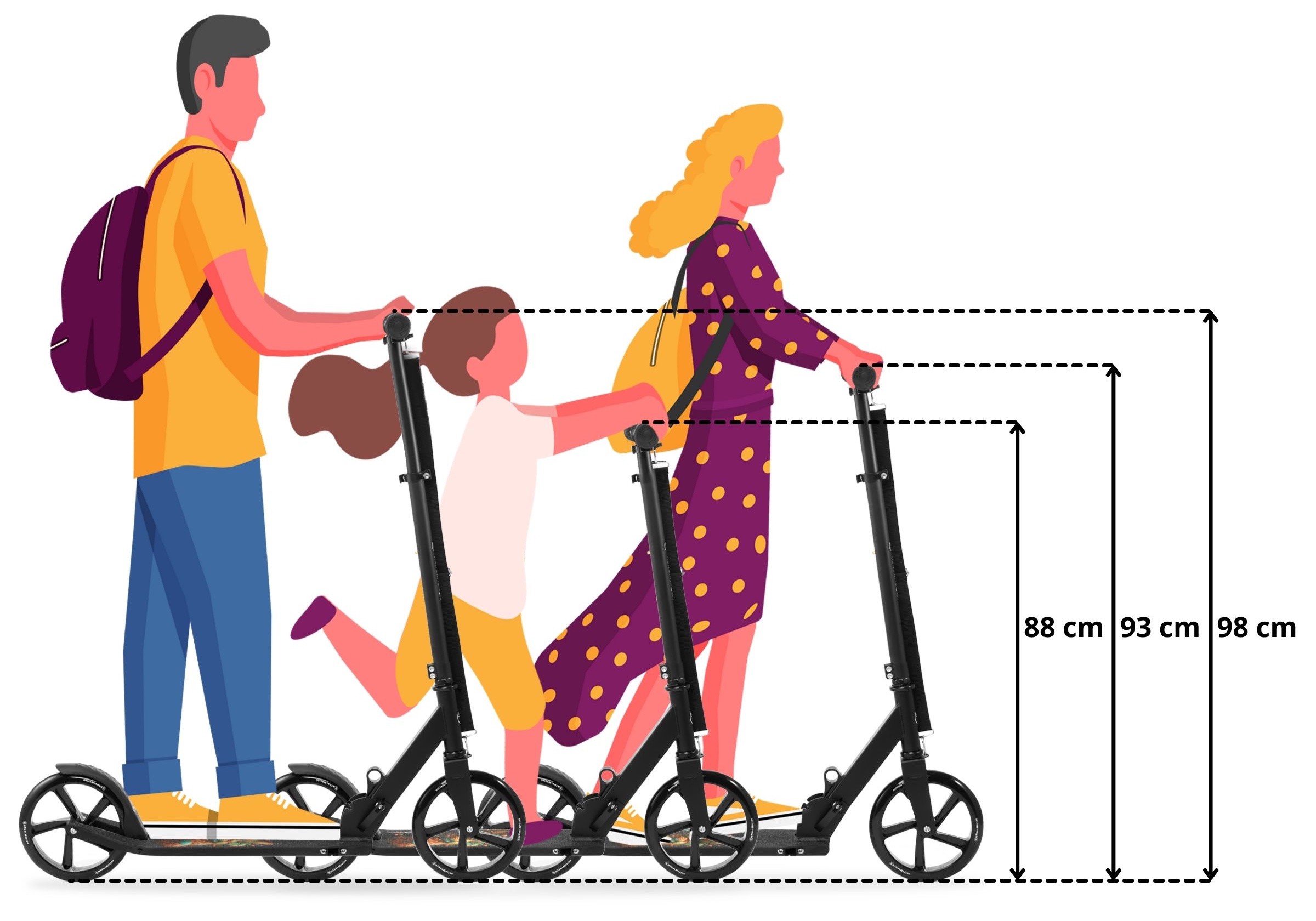 - Adjustable handlebar height - 88/93/98 cm