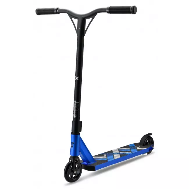 The flaX 8.6 stunt scooter in sparkling "Flash Blue" or "Flash Gold" is the more robust version of a scooter. Optimally suited for tricks and rides on the ramp.