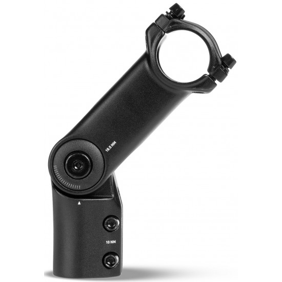 This stem is made of 3D-forged 6061-T6 aluminium, which stands for maximum stability and outstanding weight. The adjustable angle from 0° to +90° makes finding the perfect set-up to suit your individual riding position a cinch. Designed for trekking bikes.