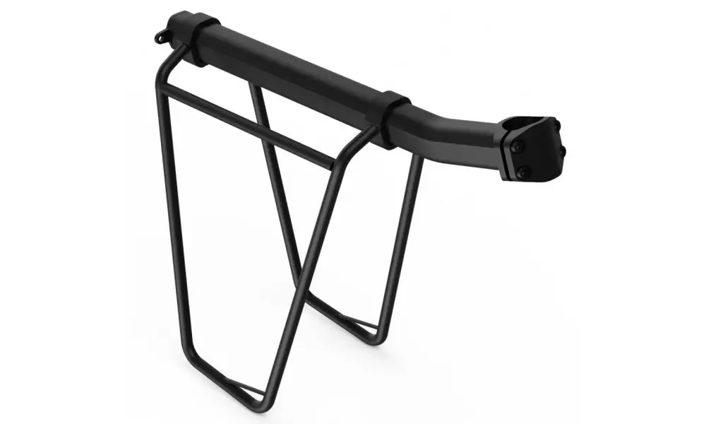 - Minimalist seatpost carrier designed for pannier bags