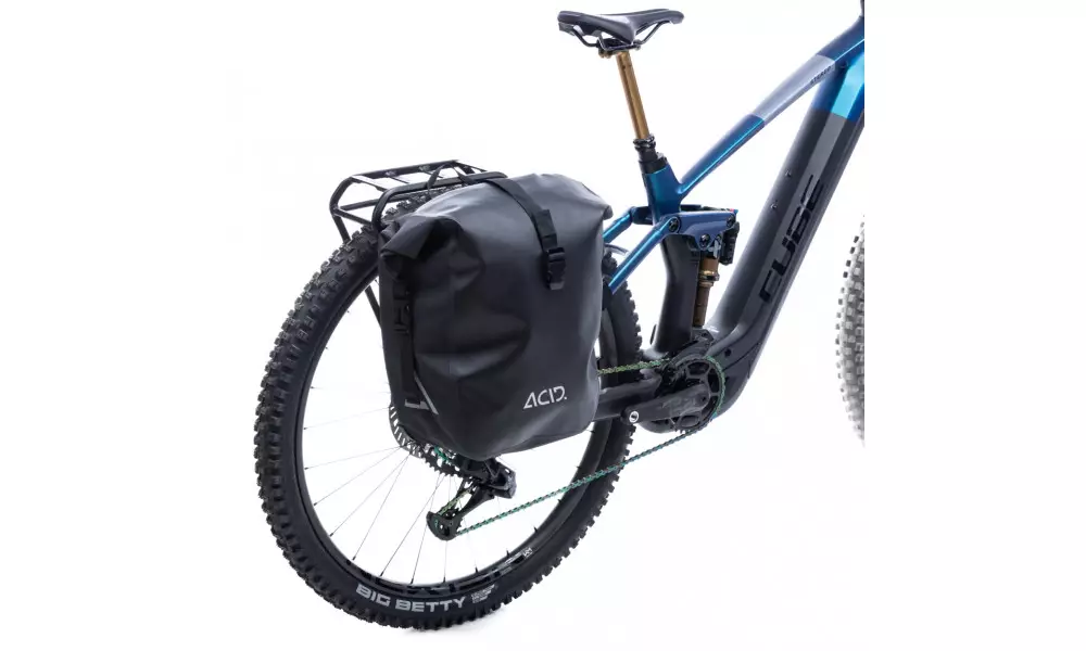 An innovative luggage carrier upgrade for full-suspension CUBE bikes. The ACID FULL SUSPENSION luggage carrier is optimised for CUBE Stereo Hybrid 140 and 160 bikes from model year 2020 onwards, and attaches using straps and a special rear axle. Its compatible with a huge range of ACID products including lights, reflectors, straps and RILink bags and baskets, as well as ACID pannier bags, tools and more besides.