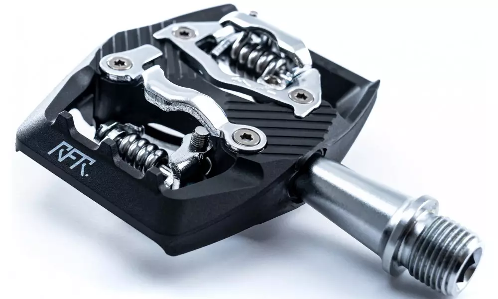 High-end clipless pedal with double-sided clip system and carbon fibre-reinforced cage, cnc-machined crmo axle and lsl bushing. Spd compatible.
