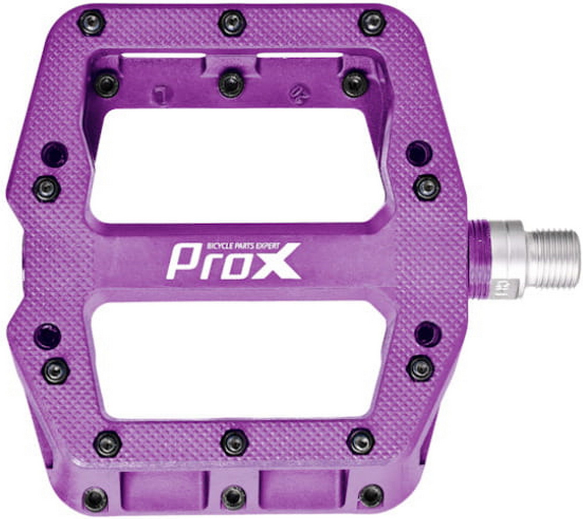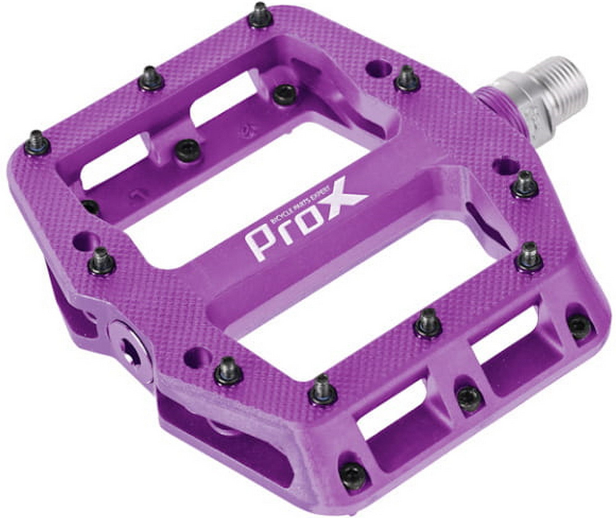 Kirjeldus - Pedaalid ProX Base Pro 26 nylon Pins axle Cr-Mo purple