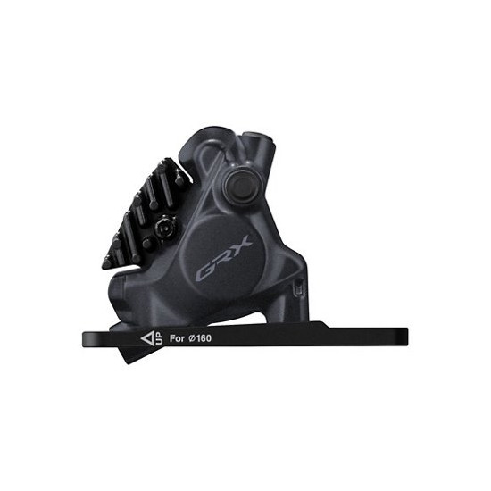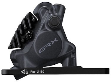 The Shimano GRX BR-RX410-F hydraulic 2-piston brake calliper for the front wheel has a flat-mount mount and L05A-RF resin disc pads with cooling fins. The GRX BR-RX410 disc brake caliper brings a new level of control to gravel cycling with enhanced modulation and a quicker initial braking point. And despite its smaller construction, the system is quieter and easier to maintain.