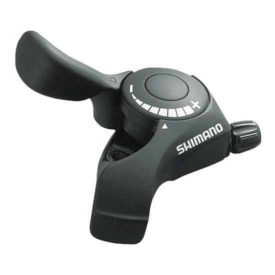 The SHIMANO TOURNEY SL-TX30-LN is a thumb shifter for mountain bikes that features SHIMANO's OPTICAL GEAR DISPLAY, which tells riders what gear position is selected while riding.