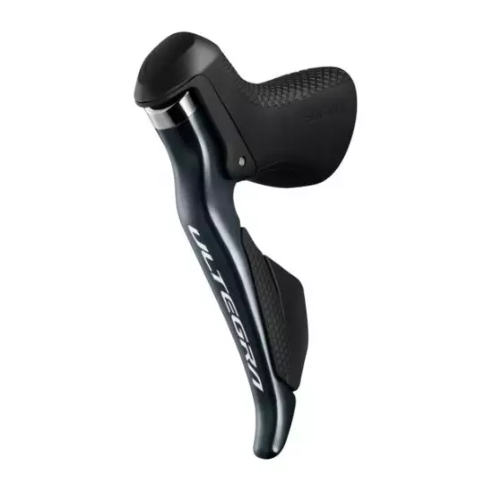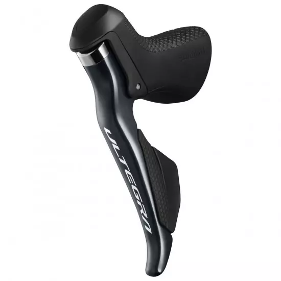 Shimano Ultegra Di2 ST-R8050 dual control lever for front 2-speed derailleur. Allows not only more intuitive shifting operations but also quick and precise shifting thanks to a clearer separation between shift buttons. A more defined click feeling and a wider reach adjustment range generate even more comfort. Group-specific each switch has the option for multi-shift ON or OFF. The STI's top button remote switch is programmable for third party cycle computers. Every function is compatible with E-Tube application or Shimano PC software.