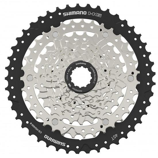SHIMANO HG400-8 cassette delivers fast and reliable 8-speed shifting performance for various bike styles. Its wide range also provides riders with an easy climbing gear.