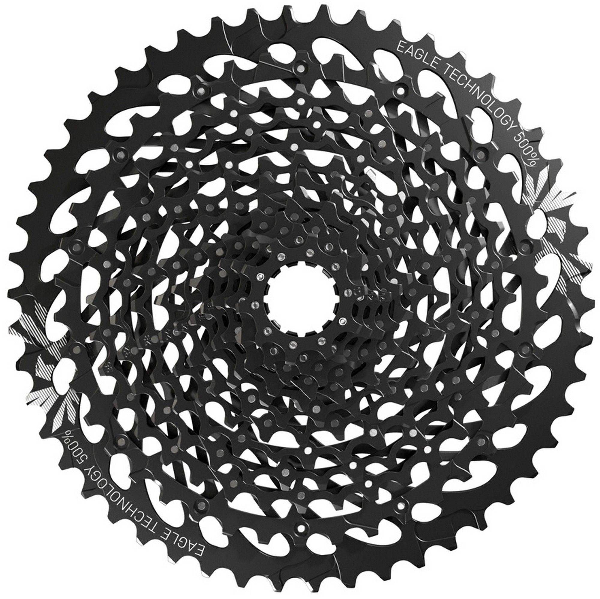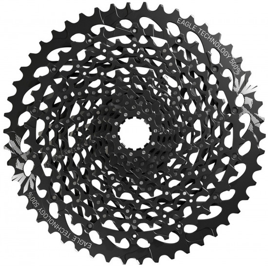 Ride anywhere with this wide range XG-1275, 10- to 50-tooth Eagle cassette that provides the right gear. Fast on the flats. Control on the climbs. Dictate your own pace, anywhere. Only Eagle technology is the 1x drivetrain engineered for infinite freedom. FULL PIN technology uses lightweight, stamped steel cogs held together with high-strength stainless steel pins. The result: a cassette thats light and strong. The open design similar to our X-DOME cassette aids in mud clearance, giving you cleaner shifting performance and longer component life. New X-GLIDE2 improves both inboard and outboard shifting, as well as chain retention.Weight: 450 gMaterial: Stamped steelSpeeds: 12Color: BlackRecommended Eagle chain onlySprockets on Spider 12Recommended Group: GX EagleCogs 10-50t: 10t, 12t, 14t, 16t, 18t, 21t, 24t, 28t, 32t, 36t, 42t, 50tCompatibility: All levels of Eagle 12-speed drivetrain systems