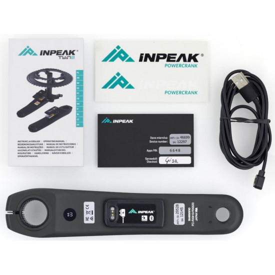 The ANT+ and Bluetooth wireless protocols are responsible for data transfer to compatible bike computers and sports watches as well as to analysis and registration apps on the smartphone. The firmware can be easily updated wirelessly using the INPEAK Manager app. The Powercrank sensor is powered by a coin cell battery, which rarely needs to be replaced due to low energy consumption. The powermeter is manufactured in the EU.