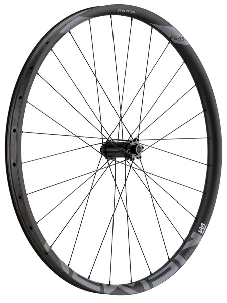 Wheelset with 35mm inner width especially suited for tires wider than 2.5"" and e-bikes. Our Evolution SL E.G.35 rims are ready to take anything you throw at them while maintaining light weight. The NEWMEN FADE rear hub makes for a more immersive experience on the trail due to its quiet freewheel system. Strong enough for up to 150kg system weight and e-bike use.