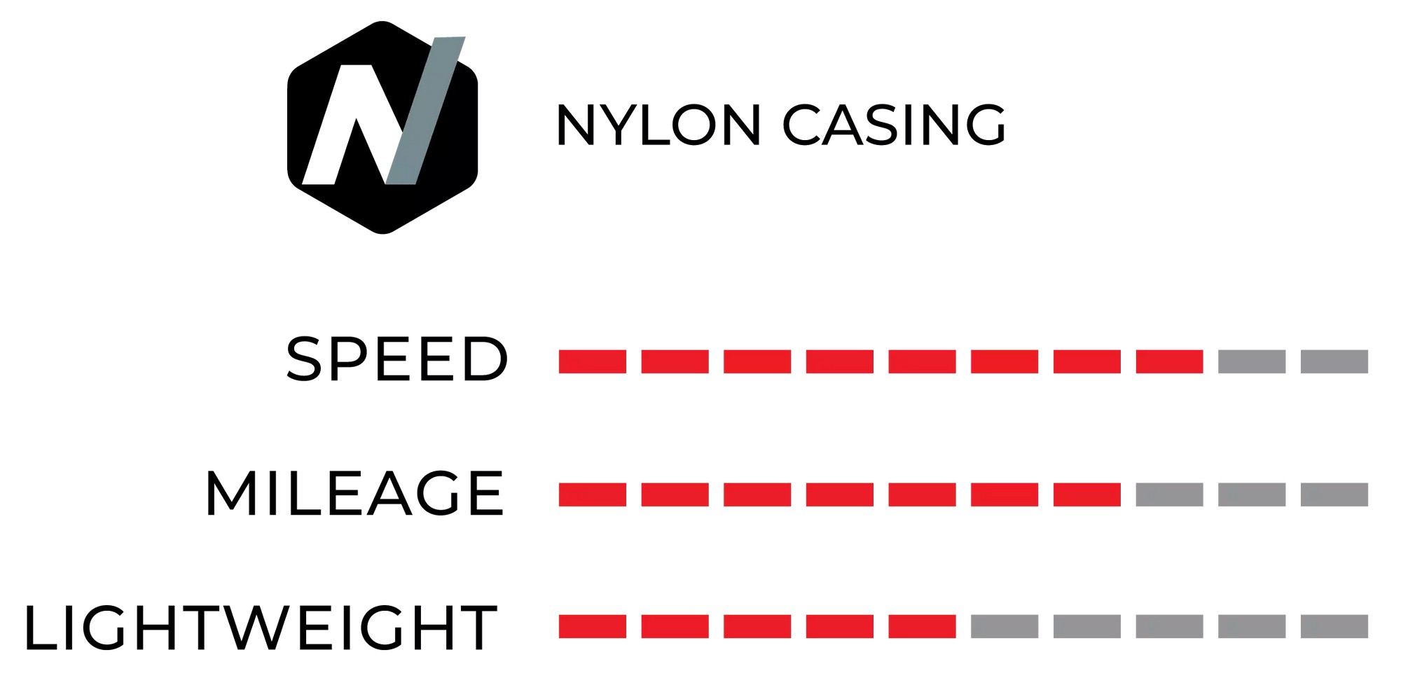 Nylon Casing:Nylon is a robust and durable artificial fiber traditionally used for strong tire casings. Nylon threads are less thin than cotton ones, so casings have a lower number of threads per inch. The advantages of nylon casings is that they are strong and durable, extending the wear life of the casing. However, because it is an artificial fiber, it is not as supple (soft/flexible) as cotton.