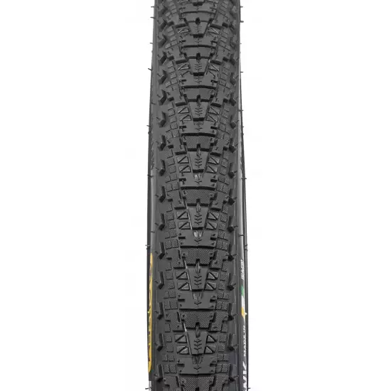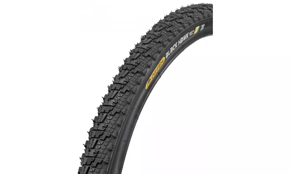 BLACK HAWK Be as fast as a hawk! This tire tread pattern was specially designed for speed when riding on gravel roads and other rough terrains. Larger blocks on the sides will reduce the likelihood of sliding at higher speeds on rough turns on gravel or forest trails, while prominent central blocks ensure the necessary grip when riding on gravel, enabling you to maintain your desired speed. This 29" tire designed for mountain, gravel, cyclocross (hybrid), and touring bikes will help you tackle gravel roads or off-road paths more easily, safely, and reliably.