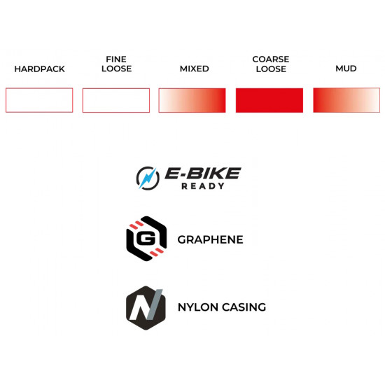 ENDURANCE FORMULATION POWERED BY GRAPHENE – Engineered for toughness and all-day reliability, this Graphene-infused rubber compound stands up to the repeated accelerations, sharp cornering, and rough terrain of cyclocross training. It delivers consistent grip and performance in all conditions, making it ideal for both hard training sessions and race day.