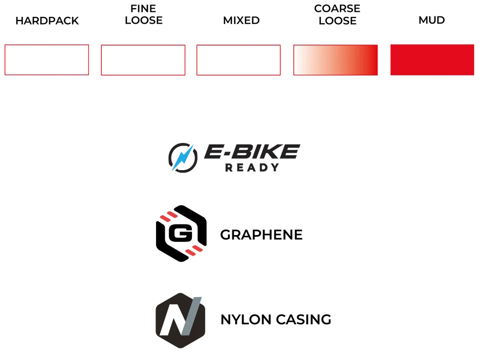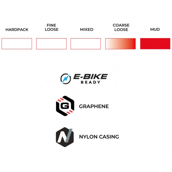 ENDURANCE FORMULATION POWERED BY GRAPHENE – Engineered for toughness and all-day reliability, this Graphene-infused rubber compound stands up to the repeated accelerations, sharp cornering, and rough terrain of cyclocross training. It delivers consistent grip and performance in all conditions, making it ideal for both hard training sessions and race day.