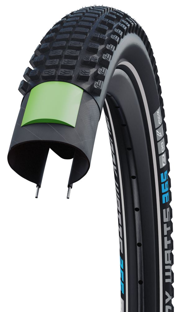 DOUBLE DEFENSE - The combined puncture protection of 3 mm highly elastic special rubber under the tread and SnakeSkin sidewalls are for bikes as well as E-Bikes a very safe choice.