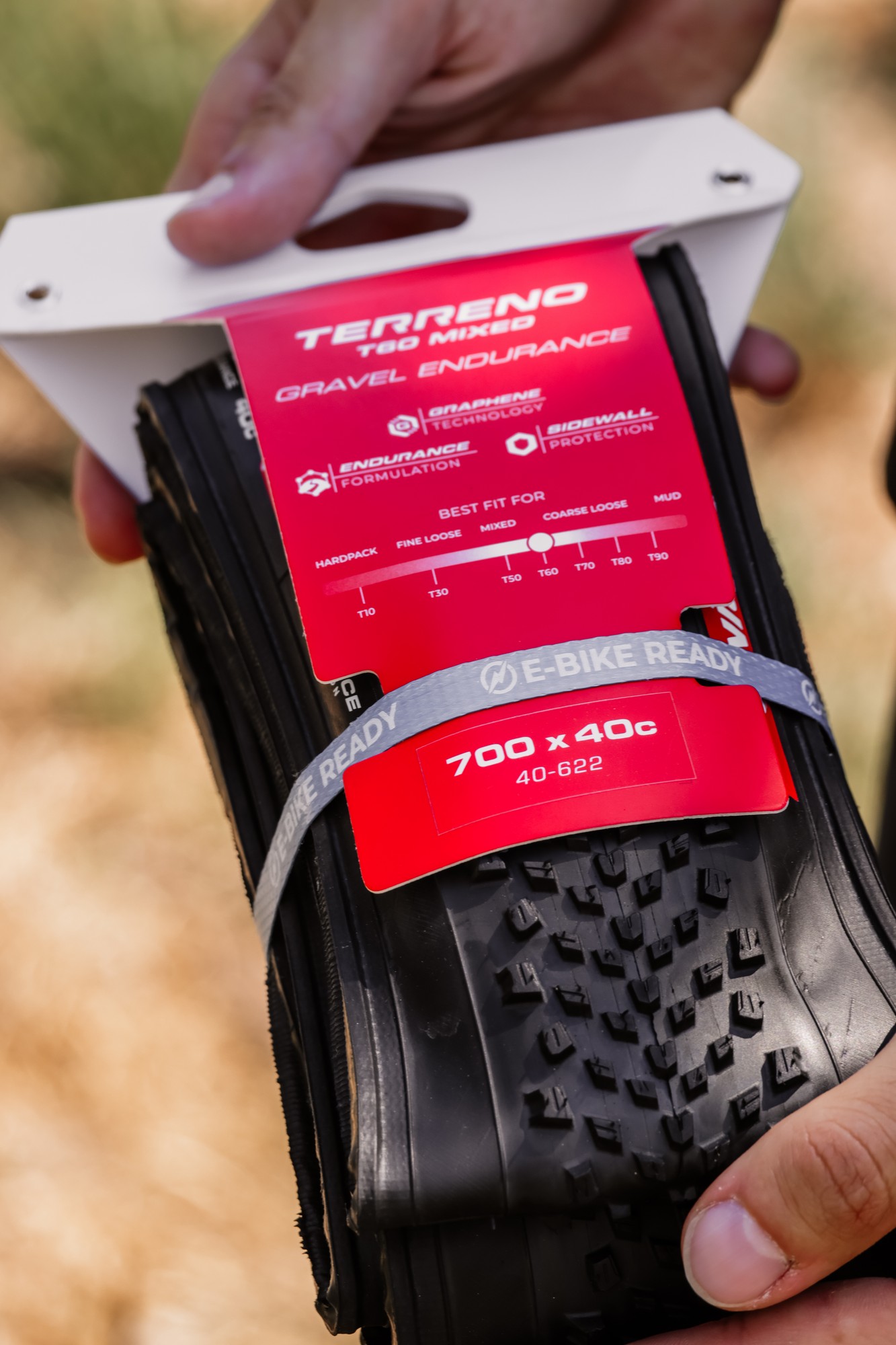 - Tactile grip in mixed gravel enabled by the surface siping combined with balanced tread spacing