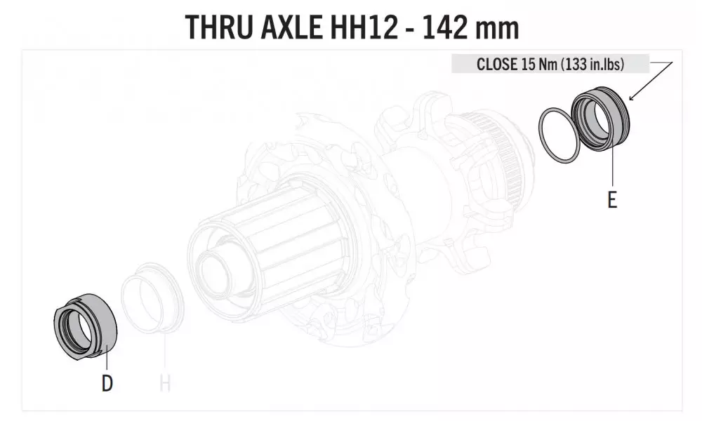 Fulcrum conversion kit for rear wheels to 12x142 mm thru axle.