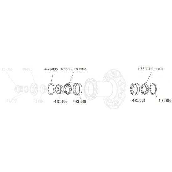 - Set includes only the following: 2 x R1-005, 2 x R1-006, 2 x R1-008, 2 x RS-111 . Other parts in exploded hub view picture are not included.