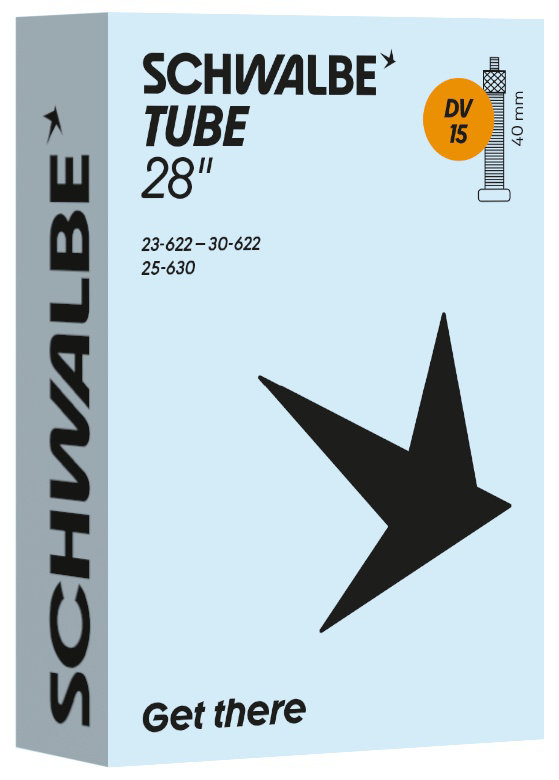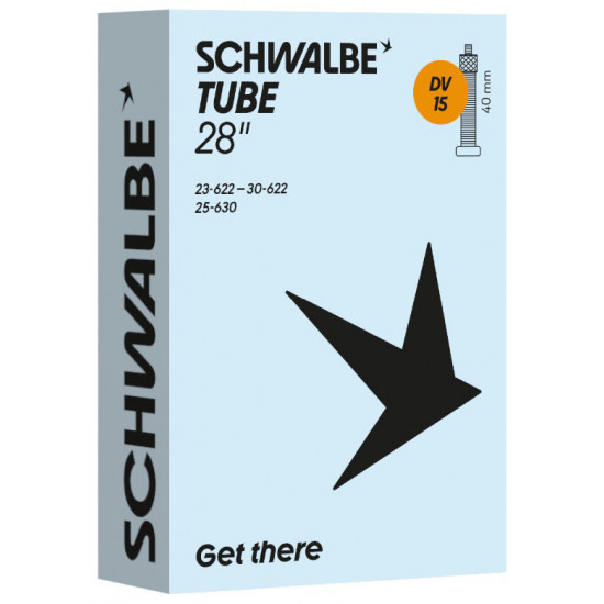 Schwalbe standard bicycle inner tube no. 15. For bicycle tires in size 28" inch (ETRTO 23/30-622, 25-630). Particularly suitable for road bikes. Holds air for an above-average length of time. Thanks to the best material quality and uniform wall thickness. Maximum reliability that has proven itself millions of times over.