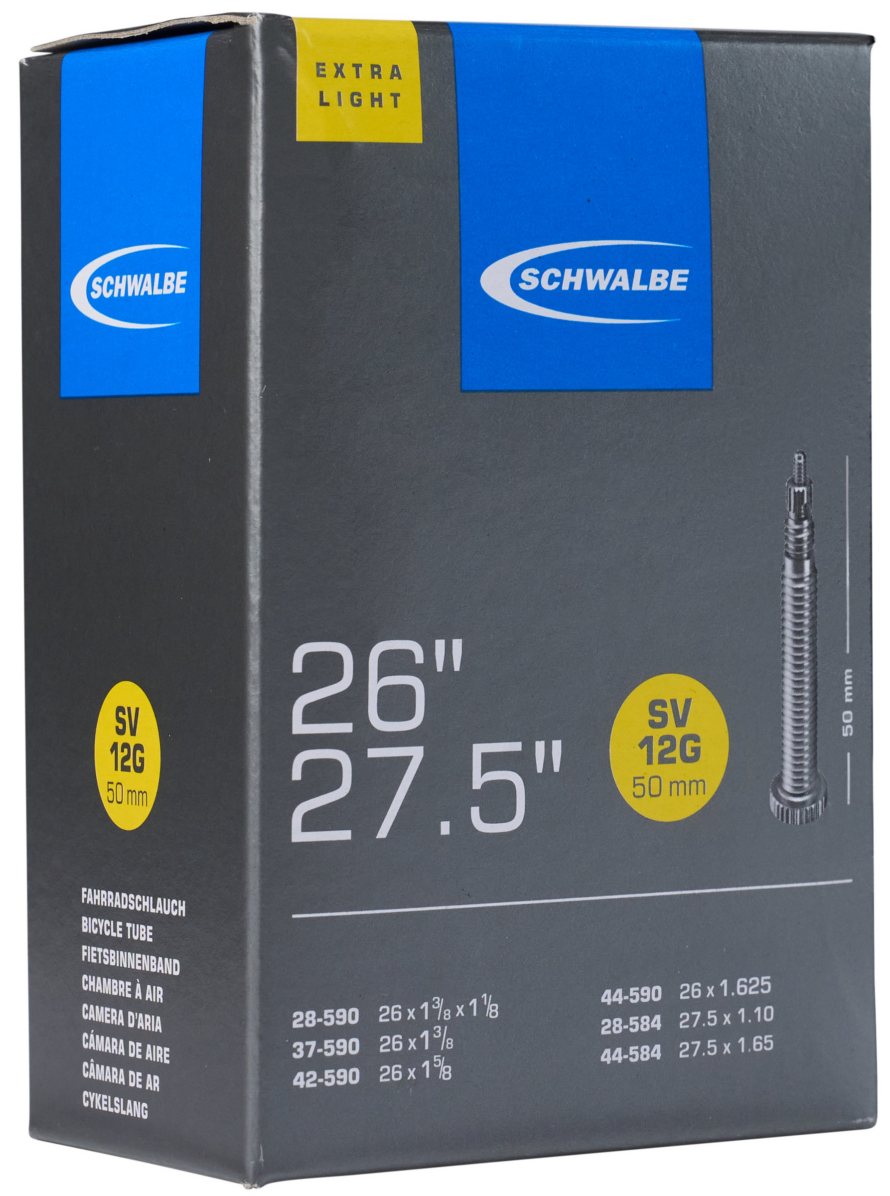 Kirjeldus - Sisekumm 26/27.5" Schwalbe SV12G 50mm Extra Light (28/44-584/590)