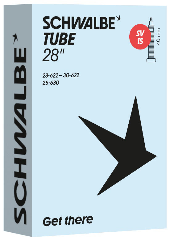 Schwalbe standard bicycle inner tube no. 15. For bicycle tires in size 28" inch (ETRTO 23/30-622, 25-630). Particularly suitable for road bikes. Holds air for an above-average length of time. Thanks to the best material quality and uniform wall thickness. Maximum reliability that has proven itself millions of times over.