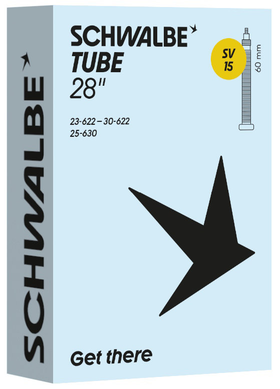 Schwalbe standard bicycle inner tube no. 15. For bicycle tires in size 28" inch (ETRTO 23/30-622, 25-630). Particularly suitable for road bikes. Holds air for an above-average length of time. Thanks to the best material quality and uniform wall thickness. Maximum reliability that has proven itself millions of times over.