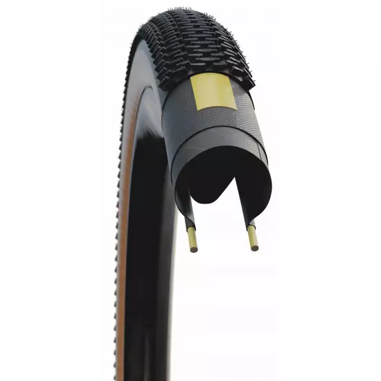Super Race carcass (Souplesse construction) for a particularly smooth ride with low rolling resistance and high impact protection.