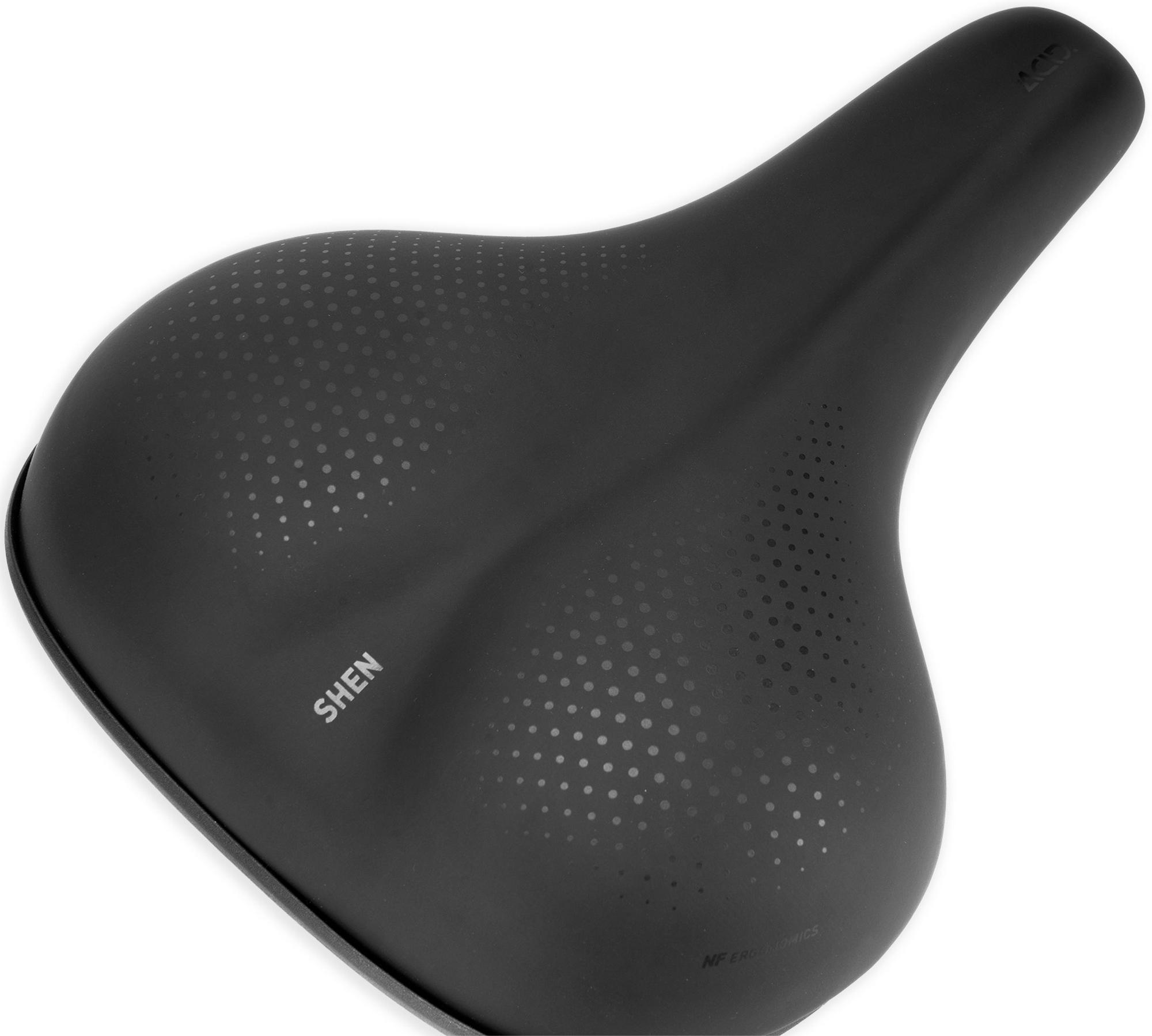 Discover the perfect saddle for your city tour or for an extended outdoor ride. The shen effectively relieves pressure and was specially developed for an ergonomic, upright riding position. The dual-foam construction also promises maximum support and unbeatable comfort during every ride.