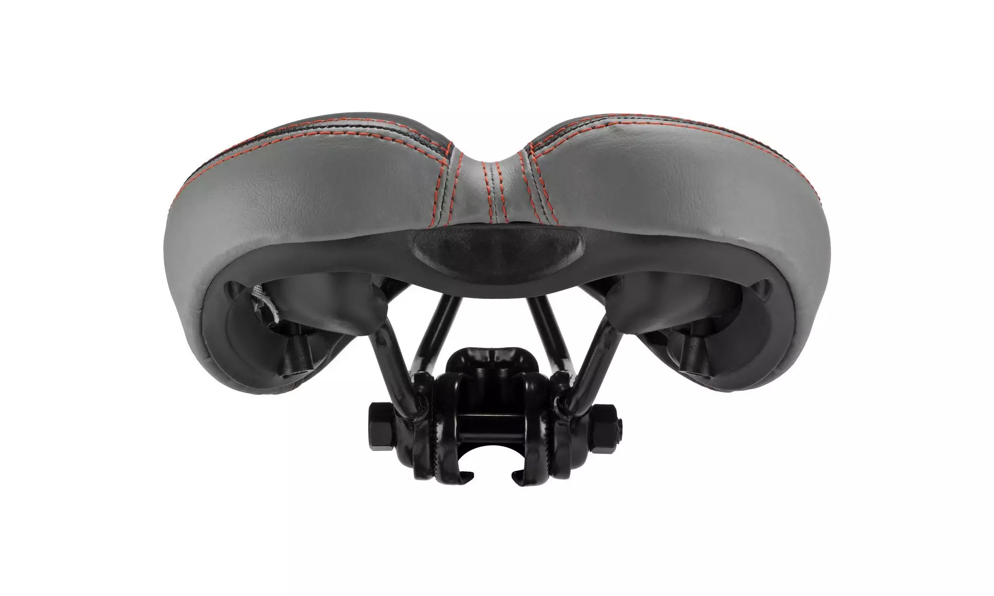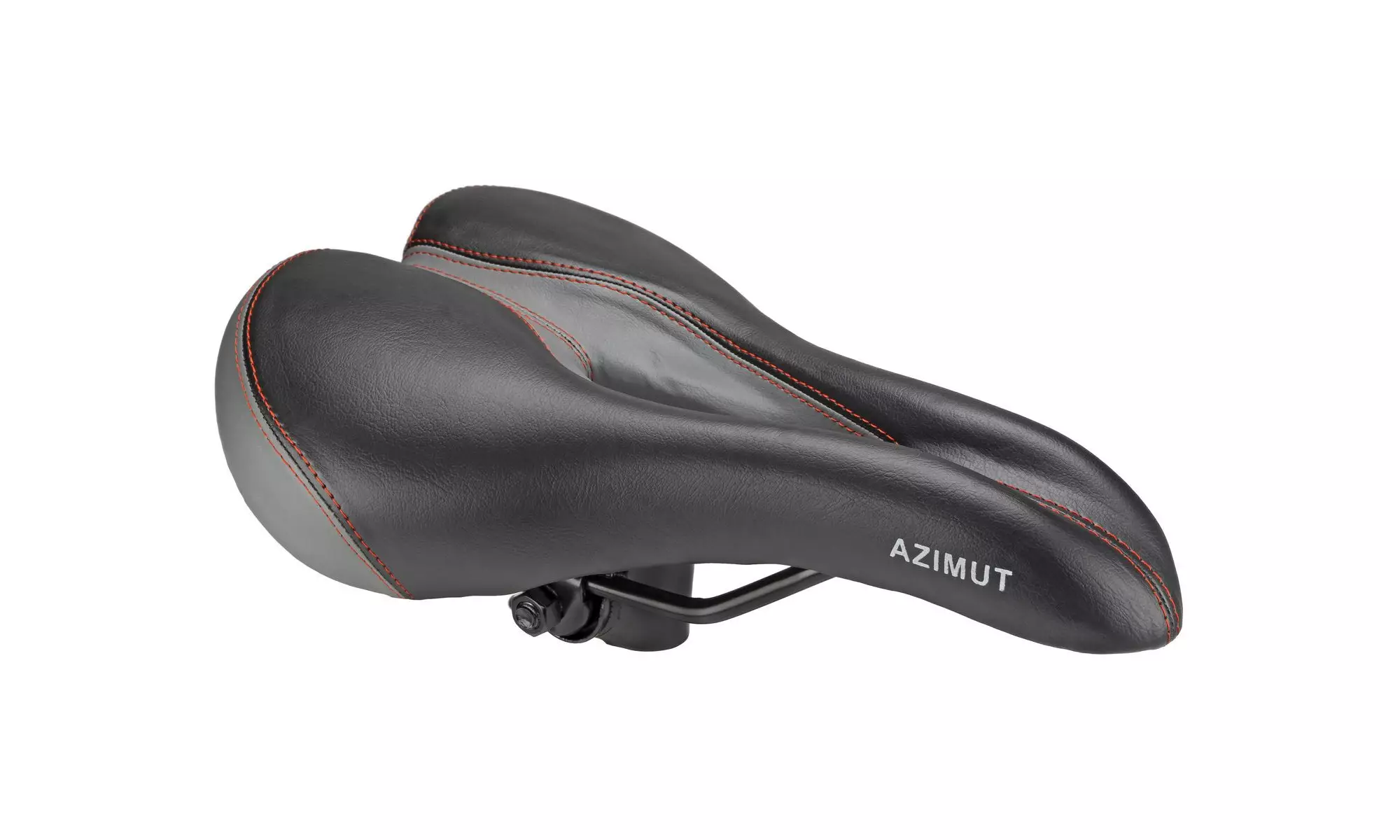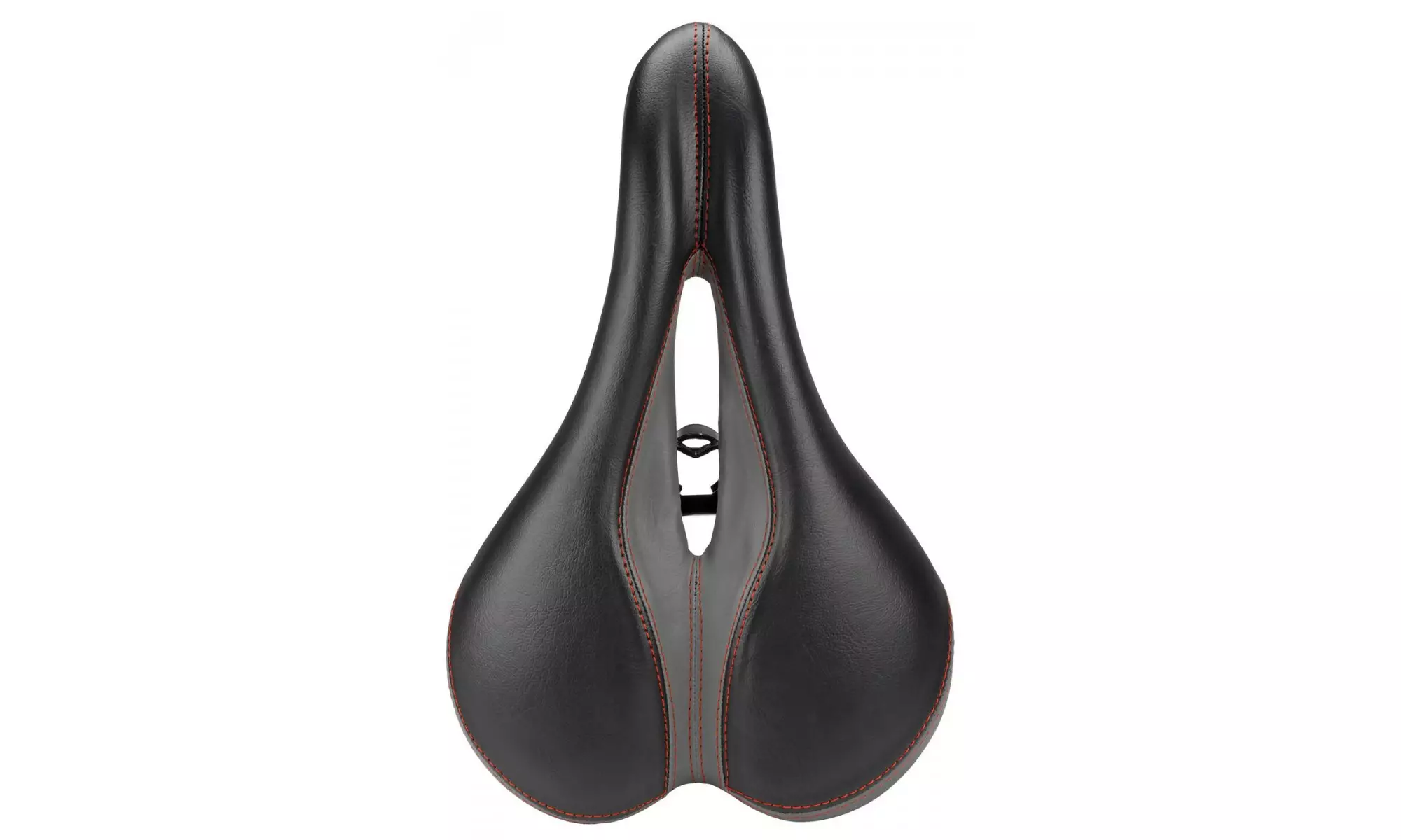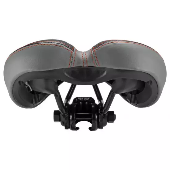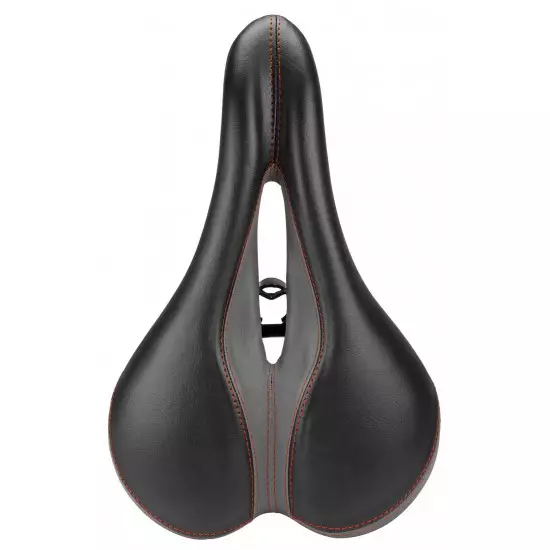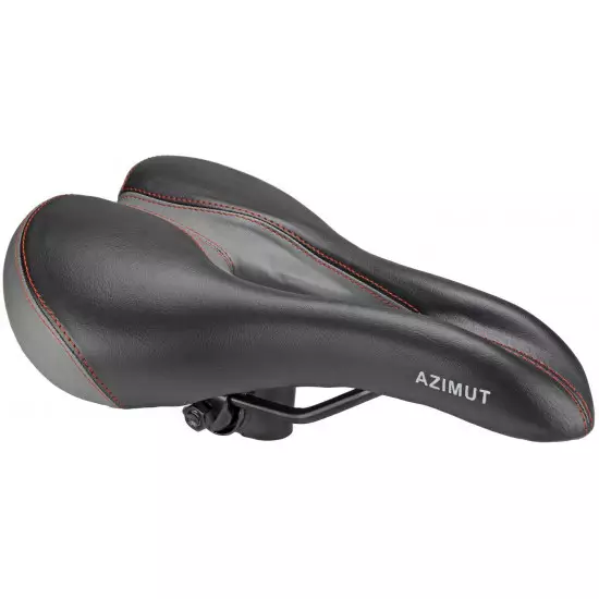 Soft saddle with foam filling and center hole for comfort, reducing pressure and dampening the vibrations. Sporty design makes a perfect replacement for hard narrow saddles on MTB/Hybrid/Treking bicycles. The cover is made of artificial leather. The saddle comes with a special adapter for standard seatposts. It can be removed in order to mount saddle on seatposts, which already have integrated rails clamp.